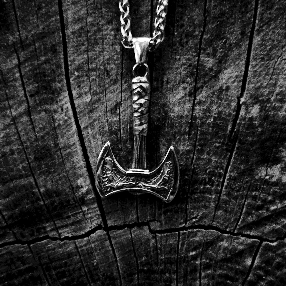 Halsband Viking Raven Axe - Dubbelfärgad