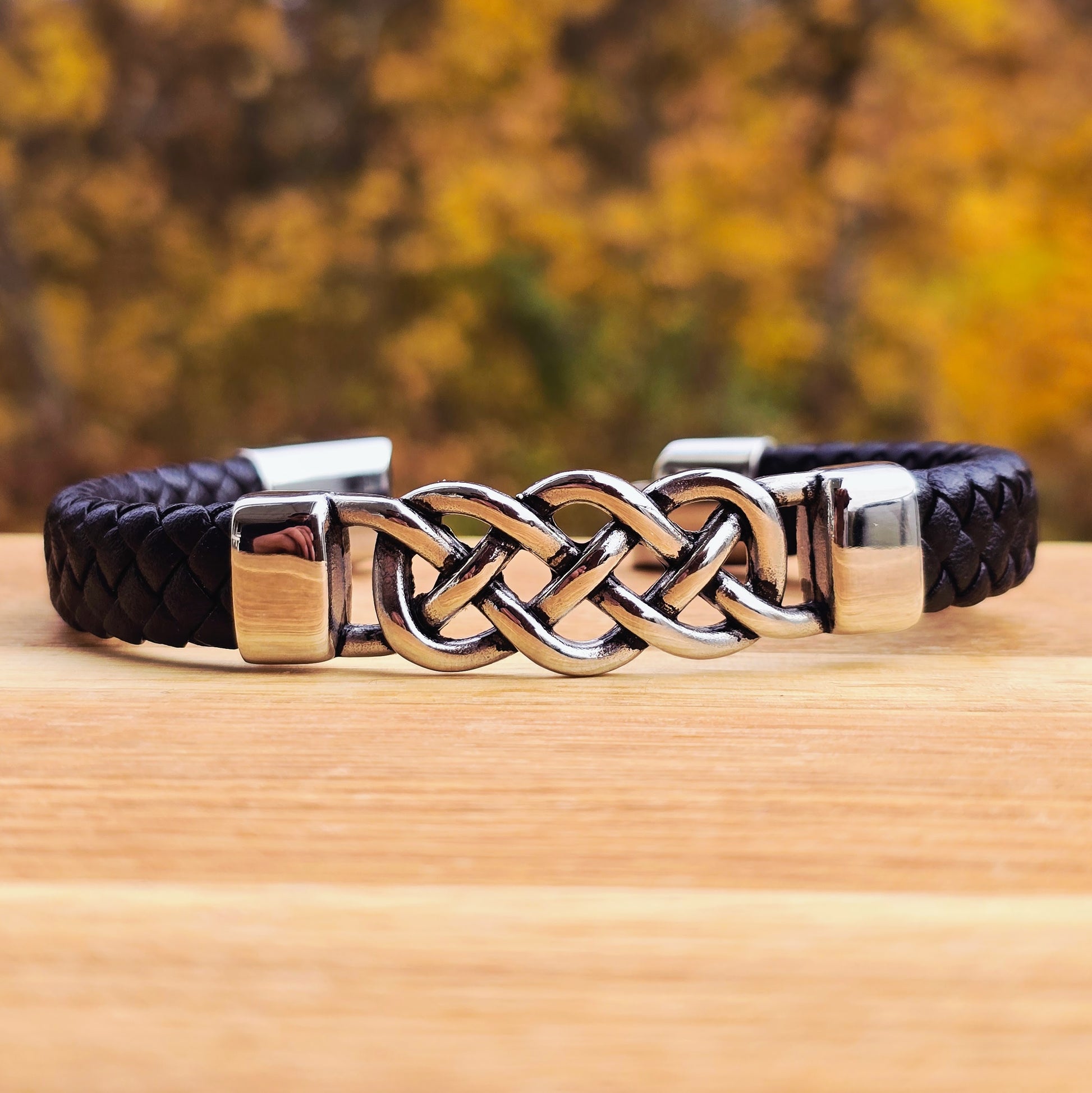 Läderarmbandet ”Massive Knot” bär den tidlösa keltiska knuten som en symbol för evighet, sammanhållning och styrka.