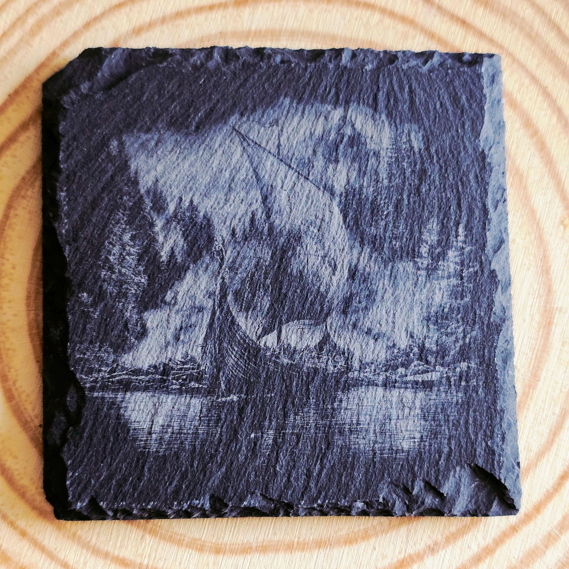 Skifferunderlägg 10x10cm – Vikingaskepp