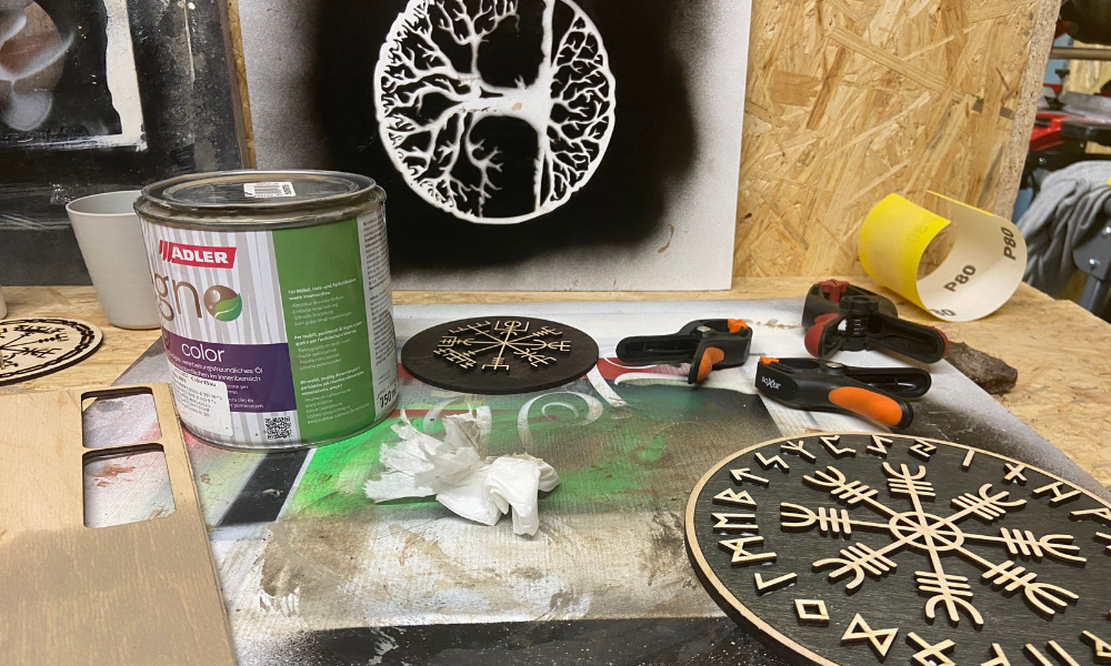 För tillverkningen av våra produkter använder vi den senaste teknologin: två kraftfulla xTool-lasermaskiner. Dessa maskiner är hjärtat i vår produktion och gör det möjligt för oss att skapa varje produkt med högsta precision, personlighet och omsorg om detaljer.