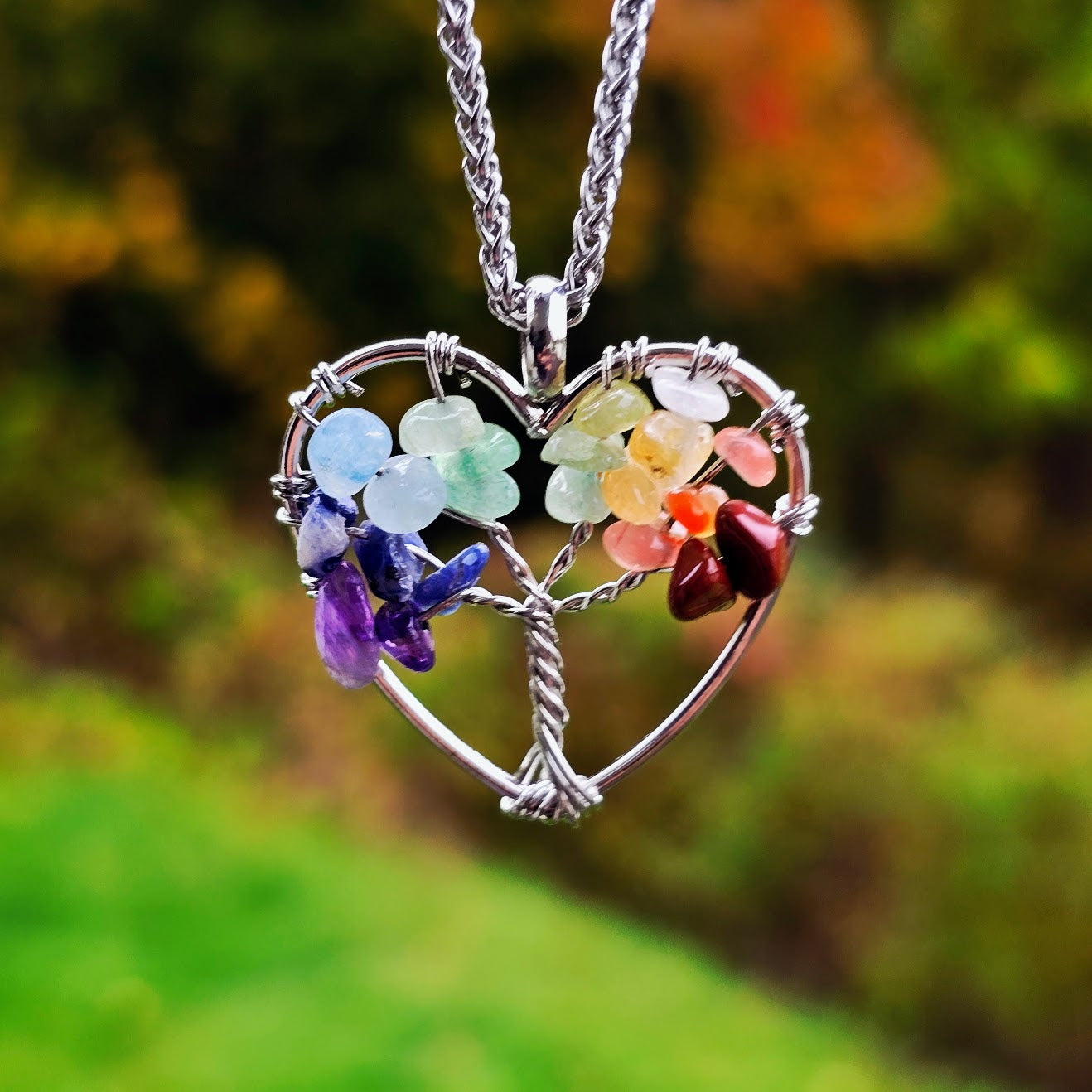 Chakra-Anhänger "Baum des Lebens" - Herz mit 7 Edelsteinen