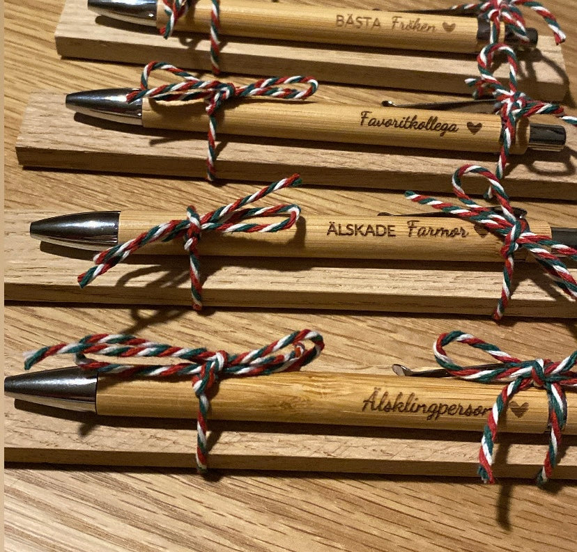 Välj vår bambupennorna med gravyr för en kombination av stil, funktion och personligt uttryck!