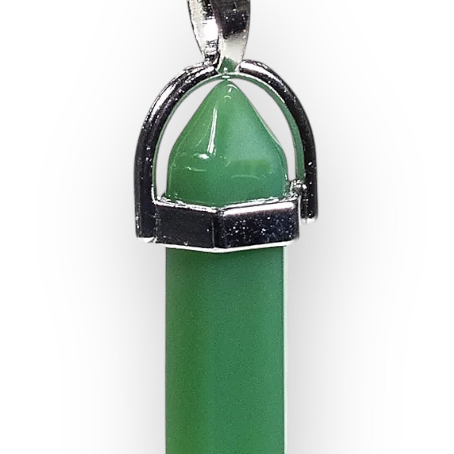 Hänget levereras med en 2 mm Wheat Chain-halskedja i rostfritt stål (50 cm) – hållbar, elegant och perfekt anpassad för att framhäva aventurinens naturliga gröna skimmer.