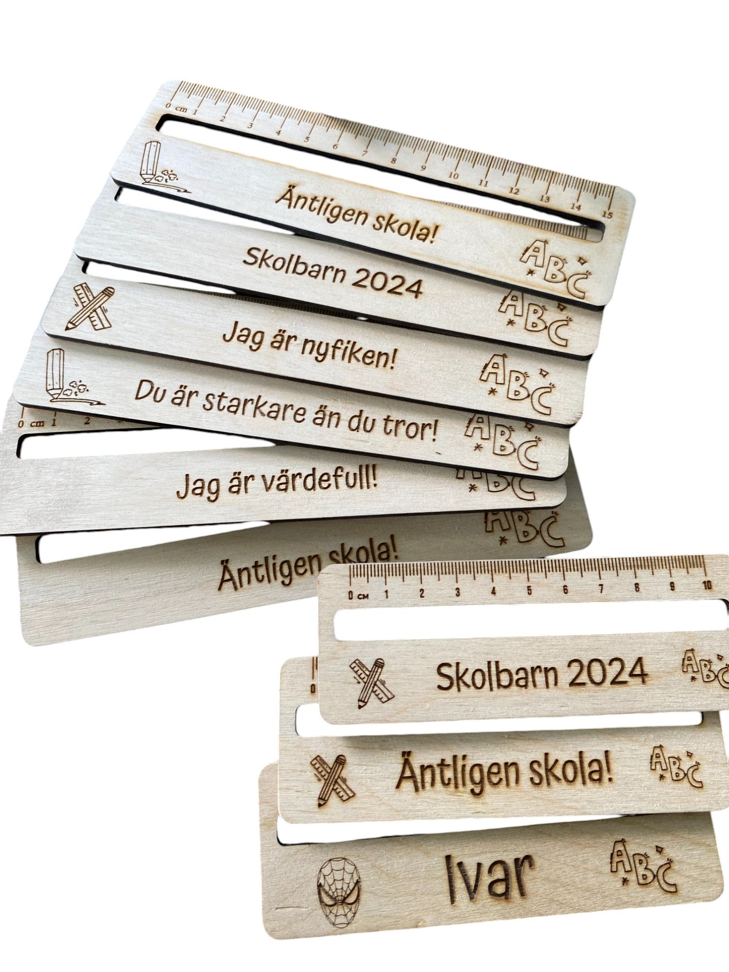 Vi kan gravera olika motiv på begäran, en mening, barnets namn - precis som du behöver det. Naturligtvis kan vi också göra sådana läshjälpmedel utan linjalmotiv.