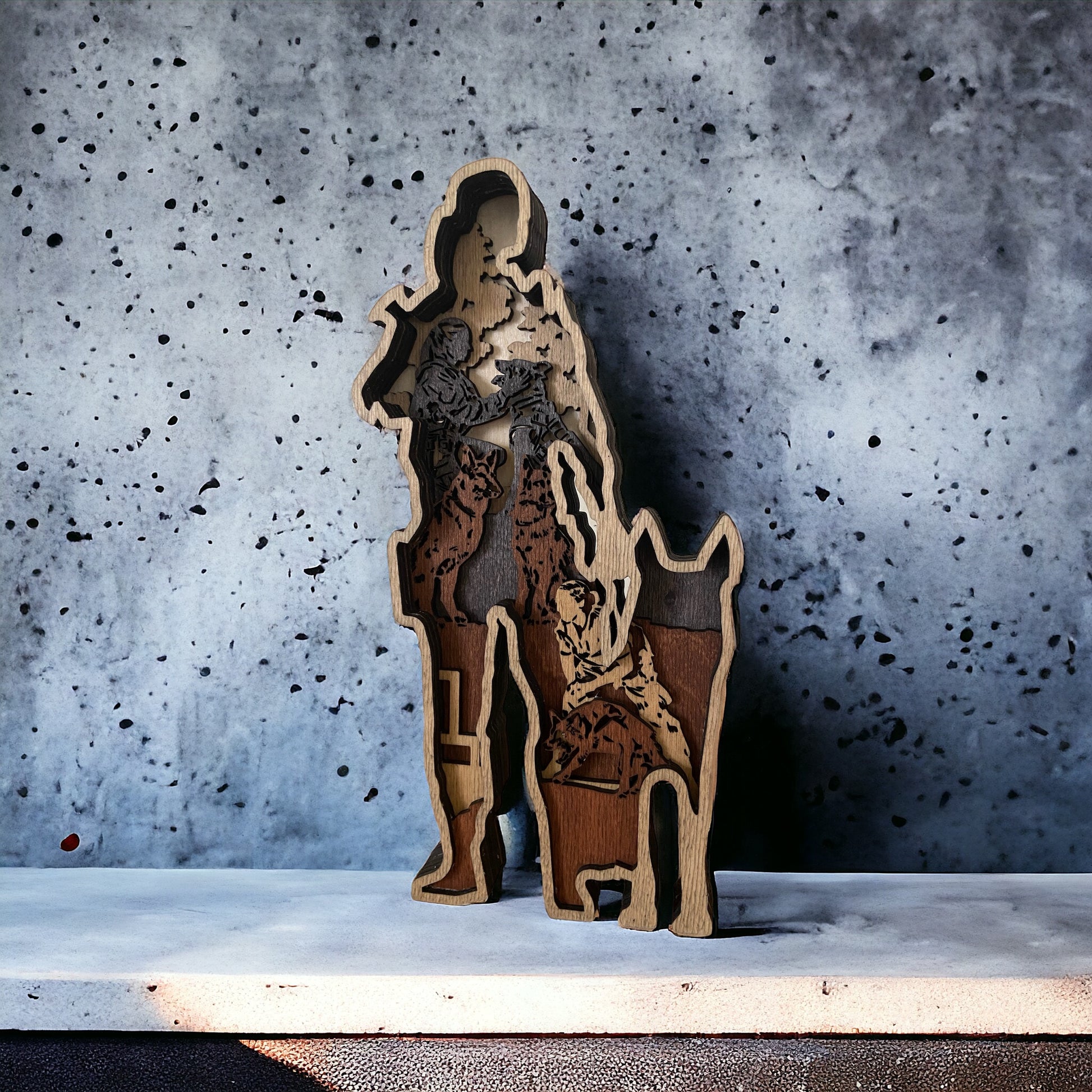 Gör ditt hem, din hundskola eller polisstation personlig med vår fantastiska dekoration i plywood med flera lager inspirerad av polisens och militärens hundträning!