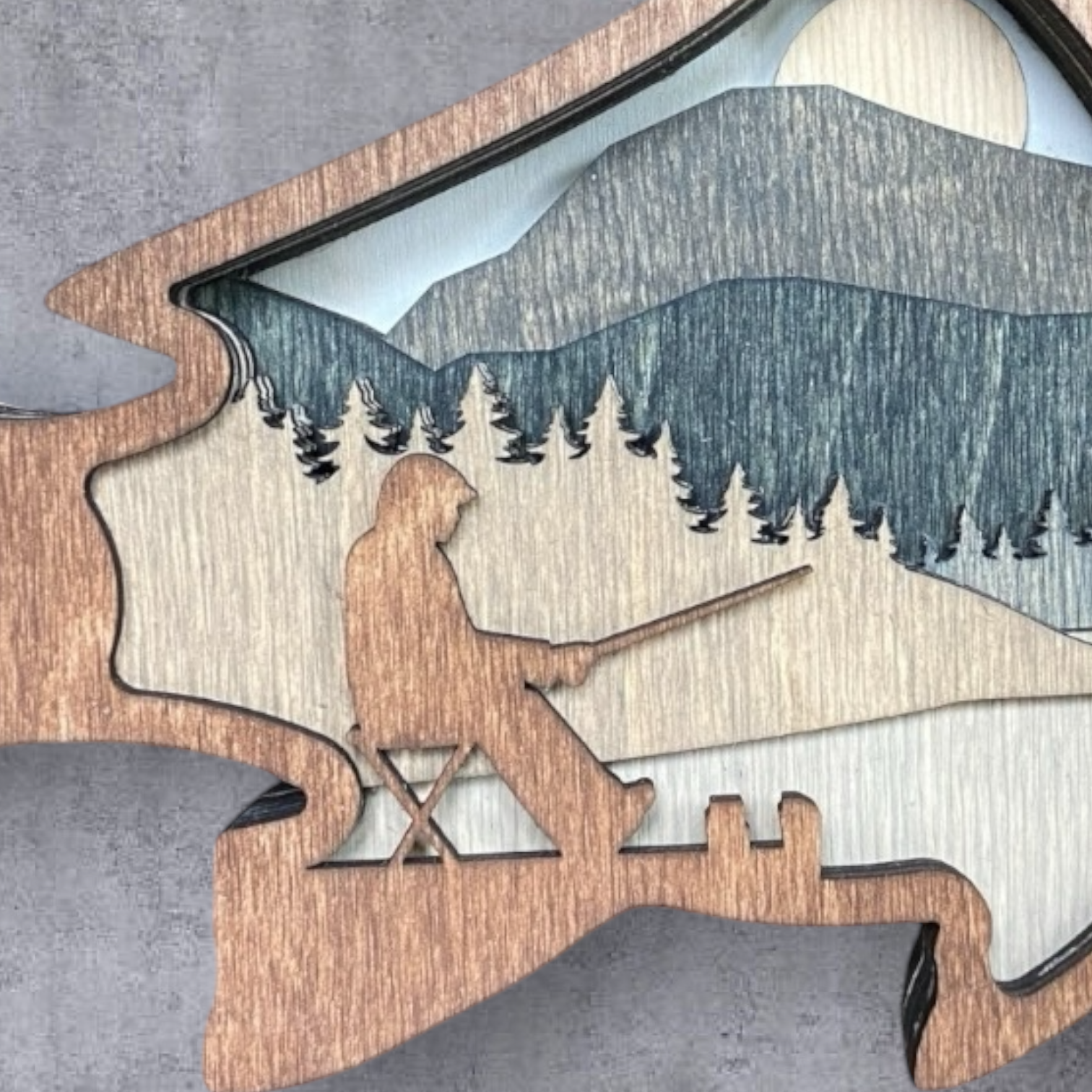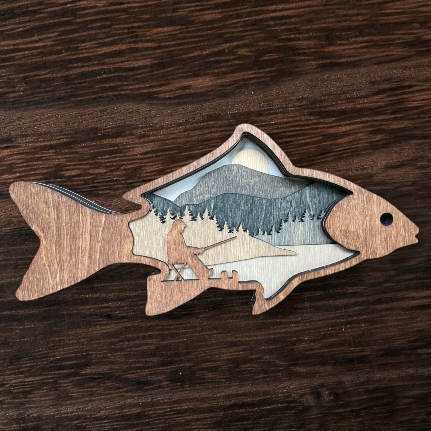 Dyk ner i lugnet av fisket med vår unika väggkonst "Relaxed Fishing". Denna konst består av 9 träskikt, som konstfullt är utformade för att fånga lugnet och harmonin vid fisket. Varje skikt fångar en annan aspekt av denna populära hobby, från den stilla vattenytan till det mjuka gungandet av fiskespöt.