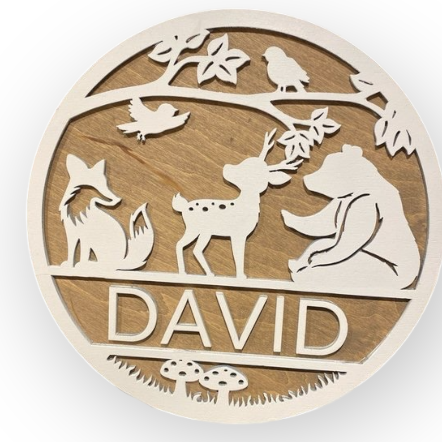 Väck fantasin hos ditt barn med våra unika, personliga namnskyltar som tar med skogens förtrollning direkt in i deras rum! Med noggrant designade motiv som skogsdjur och naturens under, är dessa namnskyltar det perfekta sättet att skapa en magisk och inspirerande miljö för ditt barn.