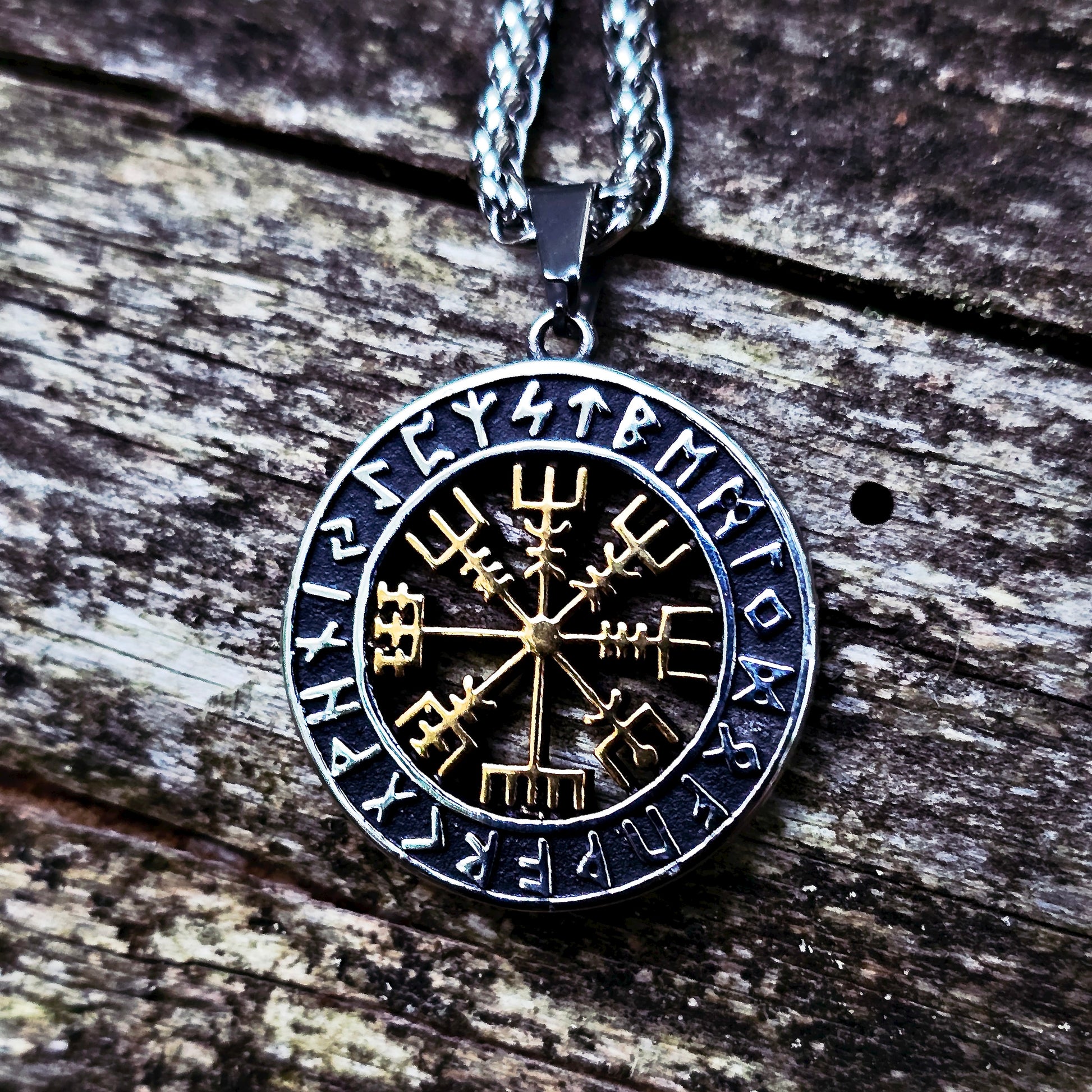 The “Vegvísir” necklace carries the ancient Nordic compass — a symbol of guidance, protection, and inner direction.