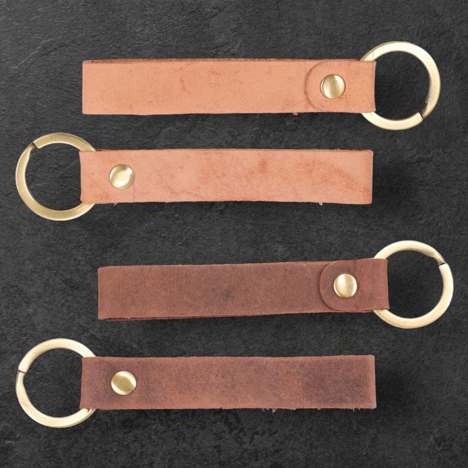 Med vår högkvalitativa nyckelring i ljusbrunt och mörkbrunt läder med ögla och mässingsring har du alltid dina nycklar till hands och ser samtidigt elegant ut.