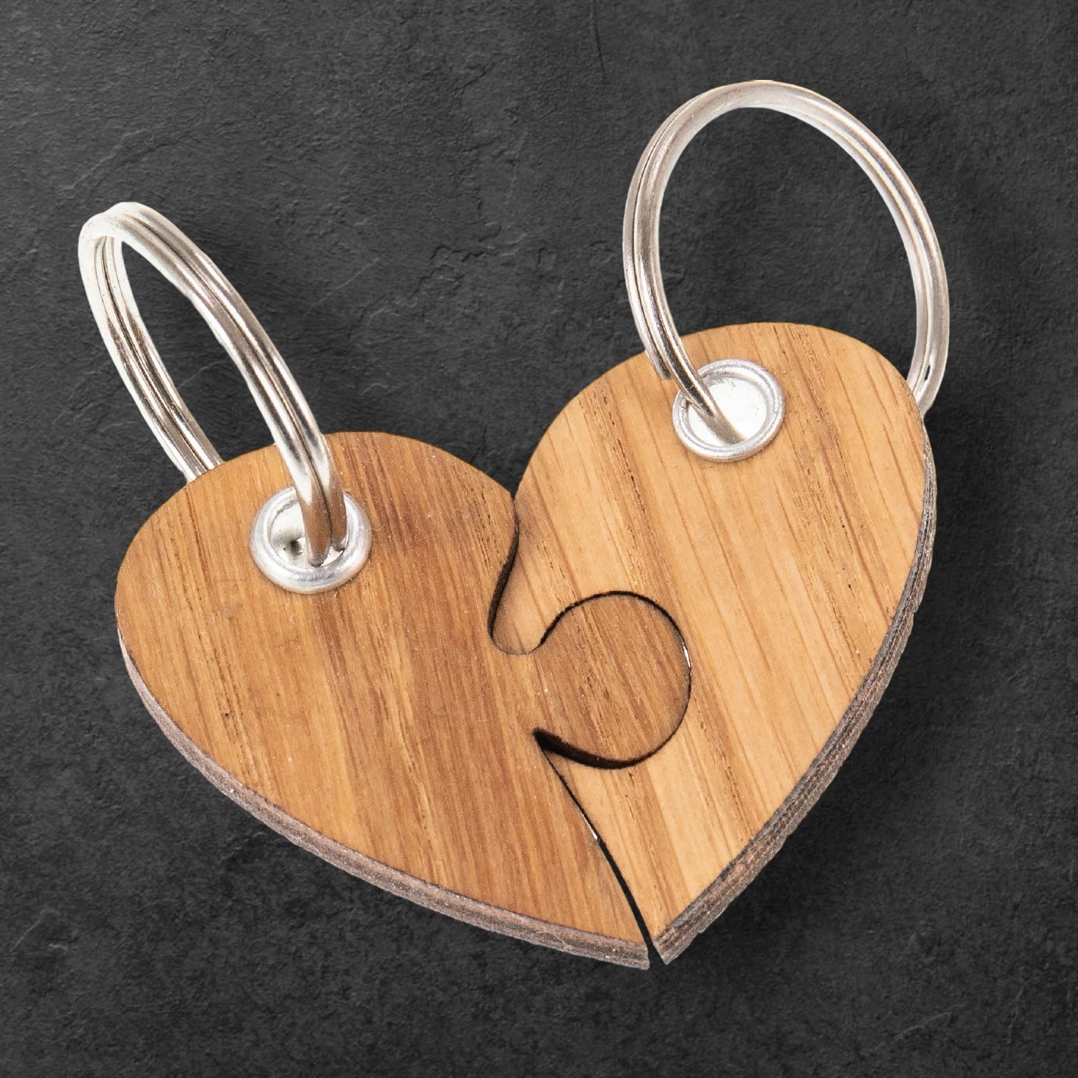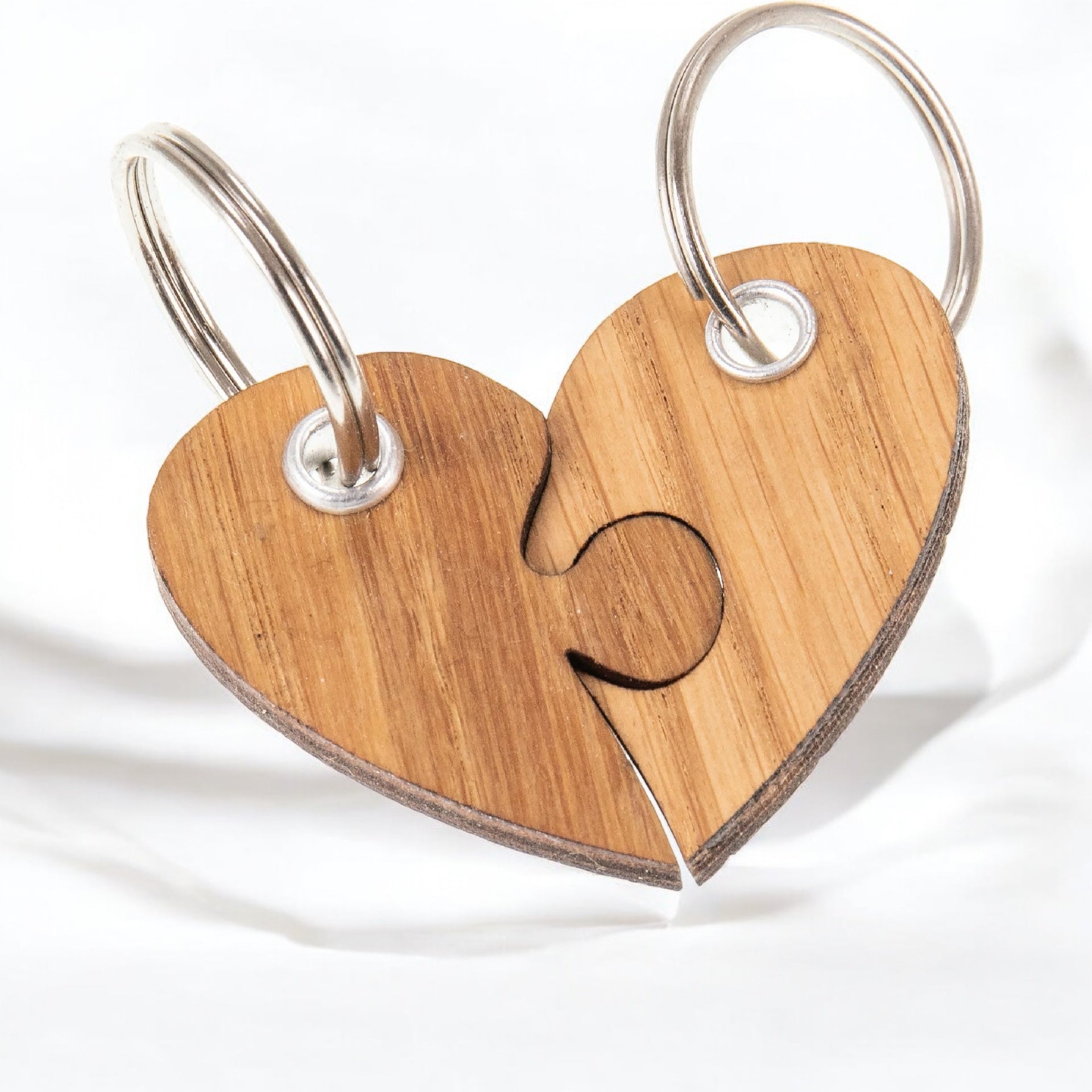 Nyckelring i trä - Oljad ek 5 mm - Hjärtpussel FSC®