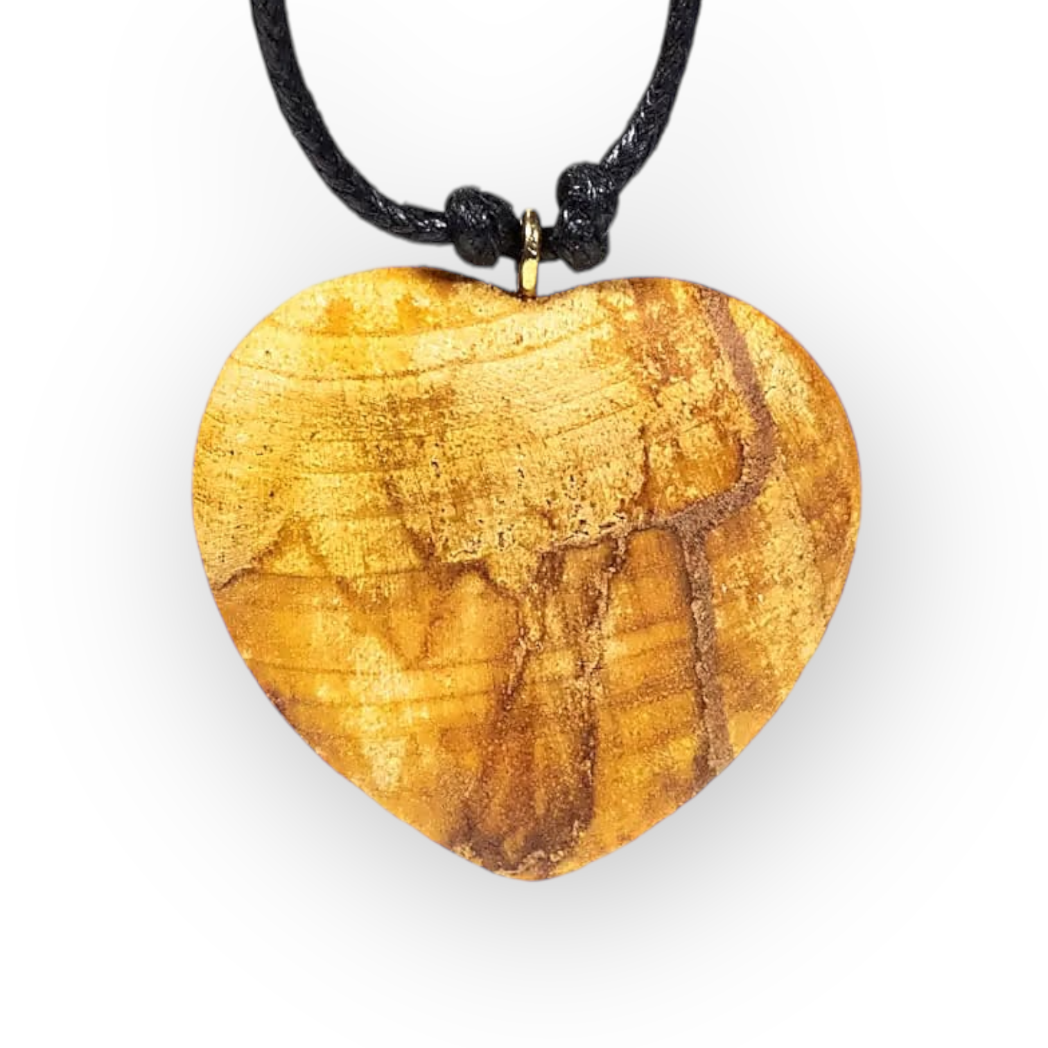 Hjärtaformad Palo Santo-hängsmycke med justerbart vaxsnörehalsband. Detta handgjorda smycke är tillverkat av hållbart skördat Palo Santo, med fokus på både hantverkarnas och naturens välbefinnande. Längden på halsbandet är flexibel och kan justeras mellan 40 och 80 cm.