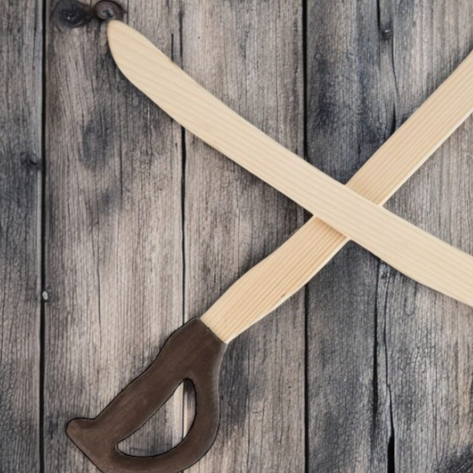 Det slitstarka granträet står emot slitage och skador, vilket gör att den tål vild och aktiv lek utan att förlora sin hållbarhet. Den släta och behagliga ytan gör leken bekväm och ger barnen en realistisk upplevelse av svärdstrid.