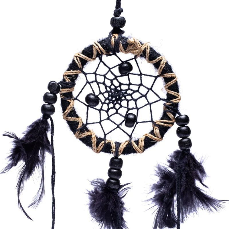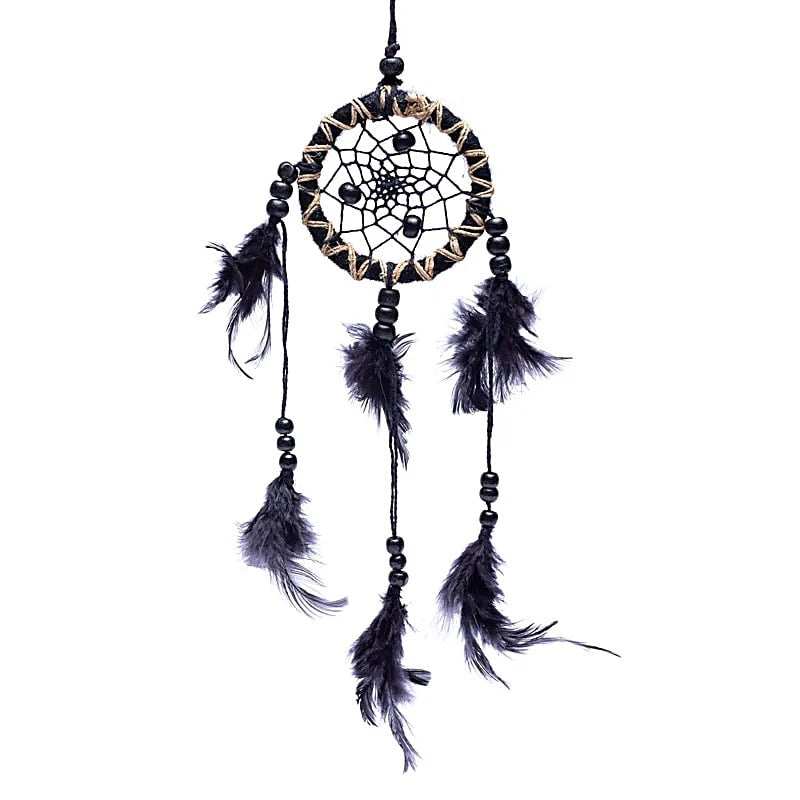 Denna stilfulla drömfångare i svart, tillverkad av mjuk ull, kombinerad traditionell symbolik med en modern touch. Med sin kompakta storlek på 25 x 7,5 cm och en vikt på endast 22 gram är den lätt att placera i mindre utrymmen – perfekt vid sängen, i barnrummet eller som en dekorativ detalj i hemmet. De svarta färgerna tillsammans med fjädrarna skapar en mystisk och harmonisk känsla som passar den som söker ett unikt och stilrent uttryck.