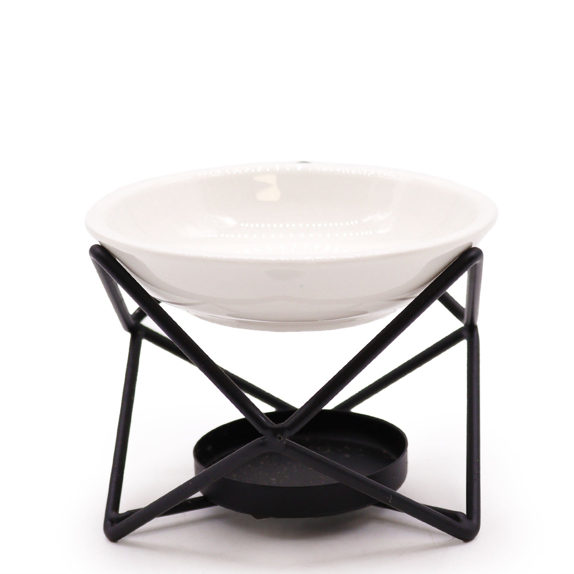 Keramisk oljebrännare med sexkantigt stativ i metall – elegant form och funktion i harmoni