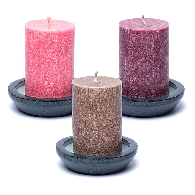Ljusstake / Underlägg i specksten – Grå, Rund